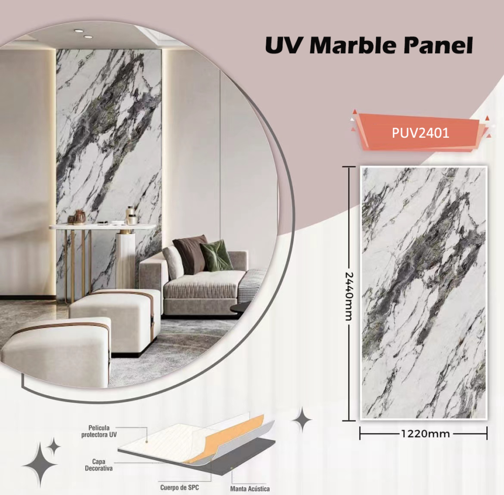 ПВХ-панелі під мармур з ультрафіолетовим випромінюванням - це економічно вигідне, довговічне рішення з розкішним виглядом мармуру, що ідеально підходить для облаштування будь-якого простору. Водонепроникність, стійкість до ультрафіолетового випромінювання та простота монтажу роблять їх ідеальним вибором як для житлових, так і для комерційних проектів.
